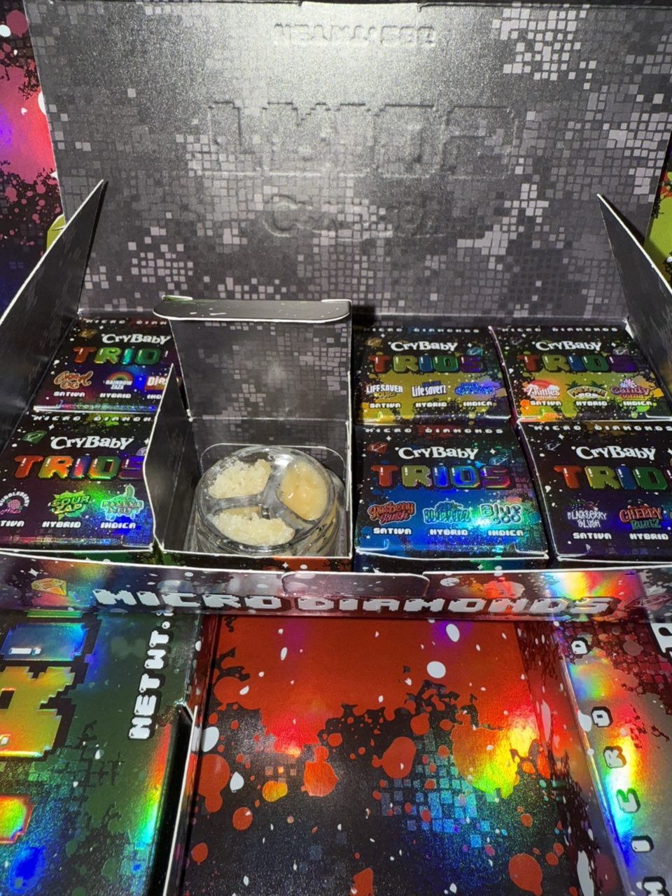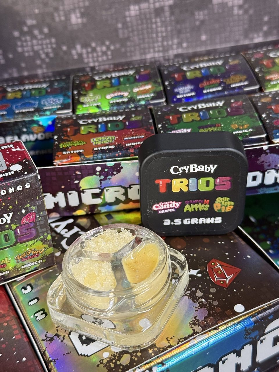 Elevate your dabbing experience with Crybaby Trios Wax, crafted from pure micro diamonds for maximum potency and exceptional flavor. Each 3.5g jar delivers smooth, consistent hits, rich terpene profiles, and a luxurious concentrate experience.