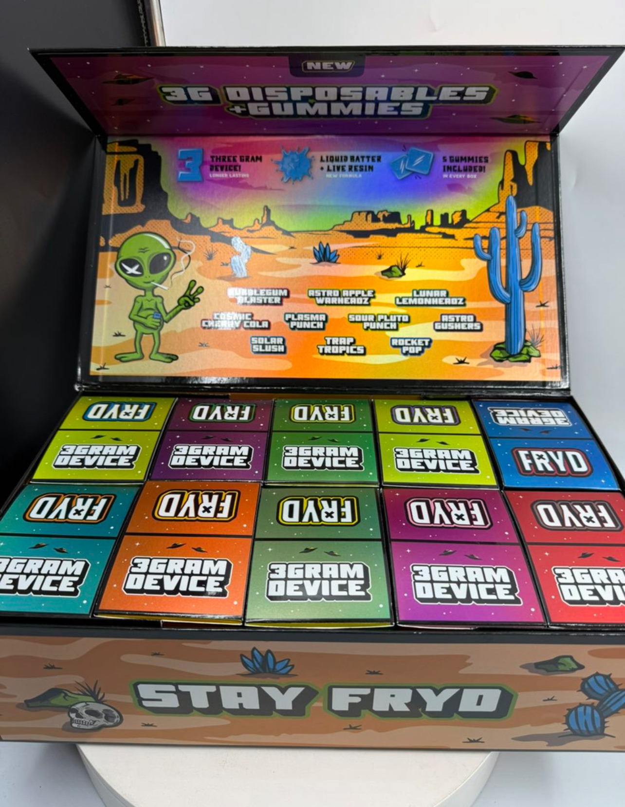 Upgrade your session with the FRYD 3G Disposable + Gummies Bundle — designed for those who want both powerful vapor and flavorful edibles in one package.